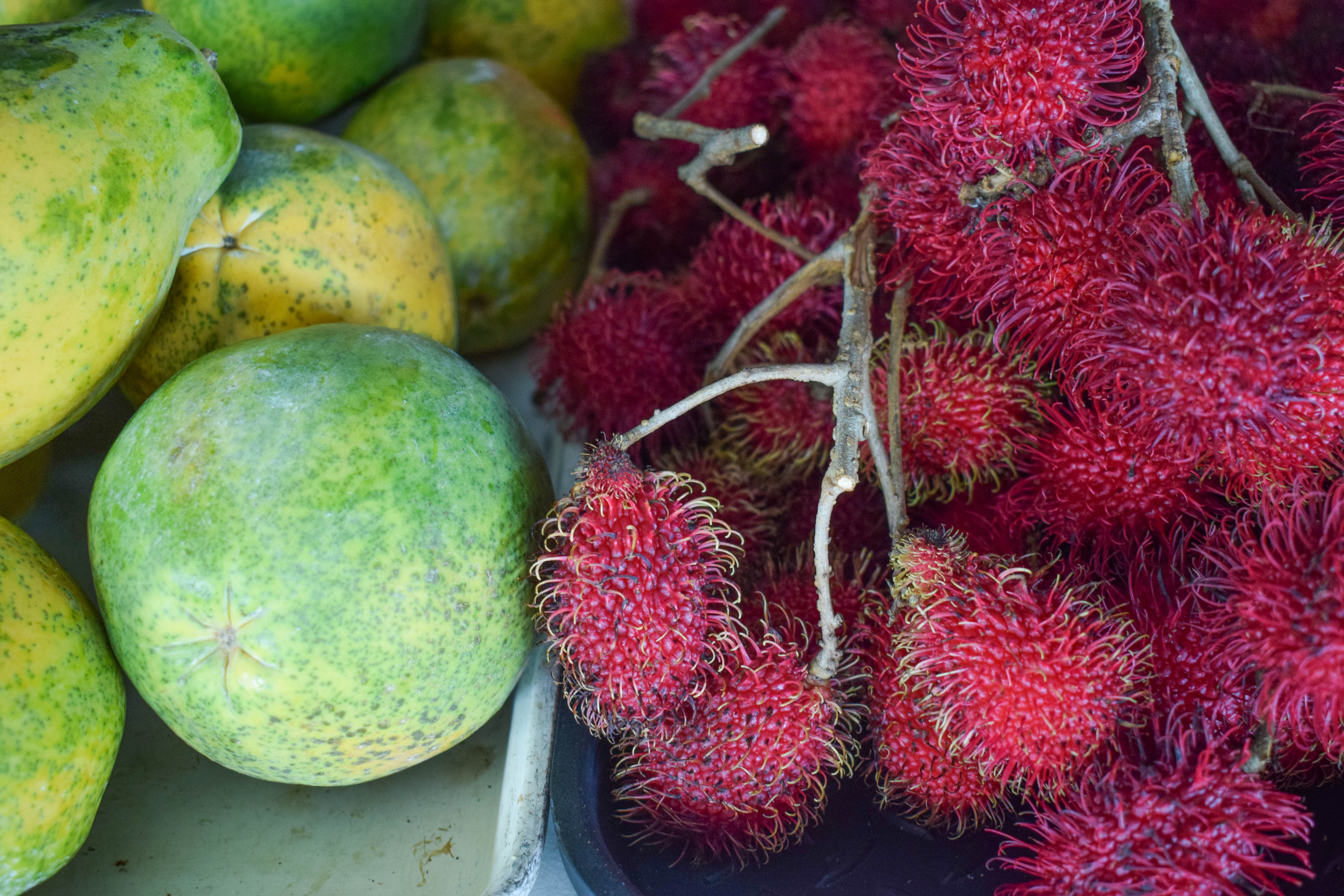 Visiting a town’s local farmer’s market is one of our favorite things to do when we visit a new place. We find it to be the best way to learn about the culture and pulse of a town, as well as a great opportunity to meet the farmers behind all the delicious and interesting products that are being sold. Depending on the season, you’ll find mangoes, liliko’i (passion fruit) rambutan, lychee, papaya and avocado, all locally-grown.