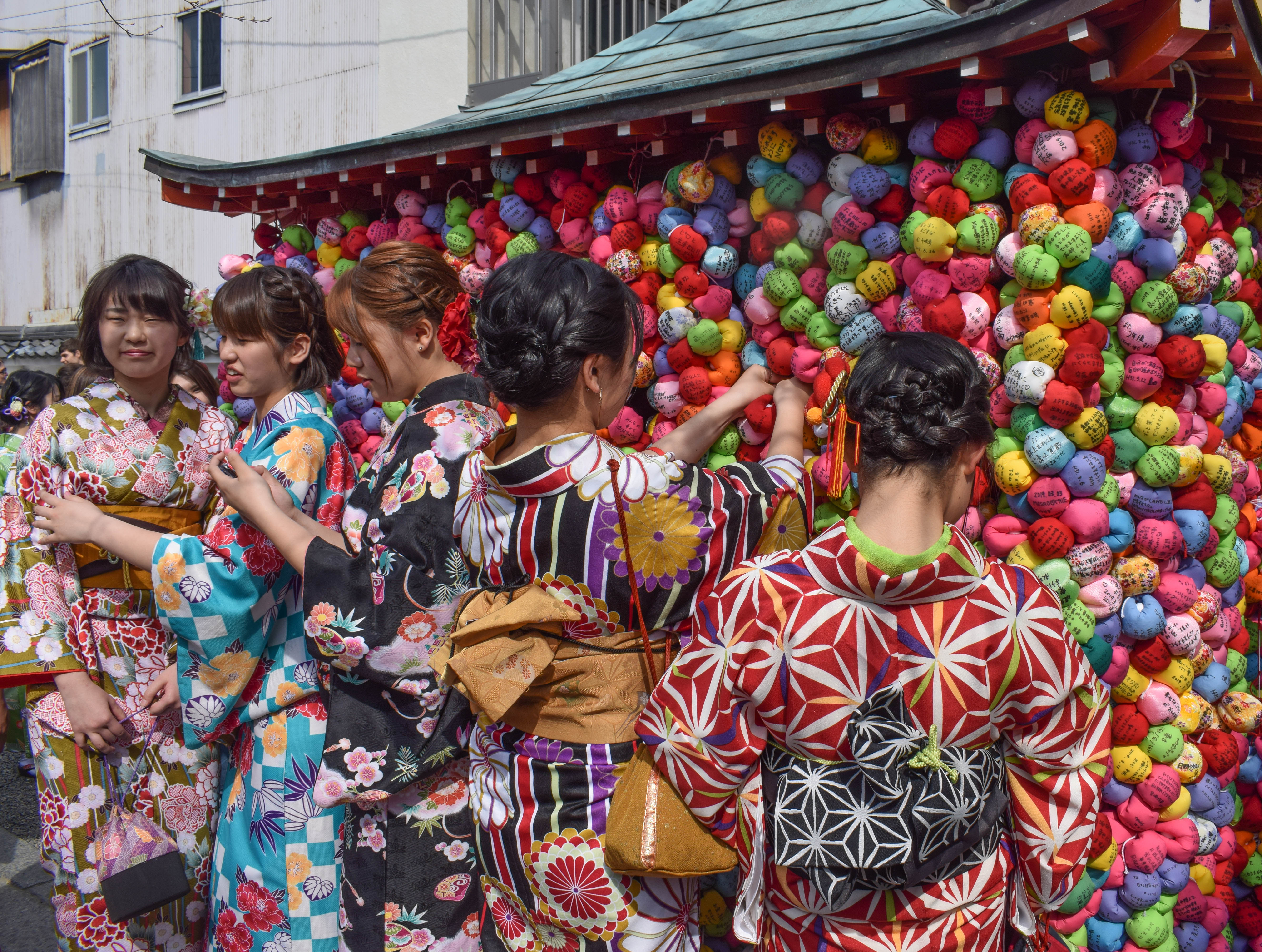 Here you can write your wish on a colorful ball called “kukurizaru” and hang them at the temple. Kukurizaru is a round ball made of cloth, which represents the good faith monkeys. It is believed that if you write down your sins, greed or undesirable traits and hang it at the temple, it will be left behind and you will be cleansed of that negative trait. This visit was included during our Kyoto free walking tour.
