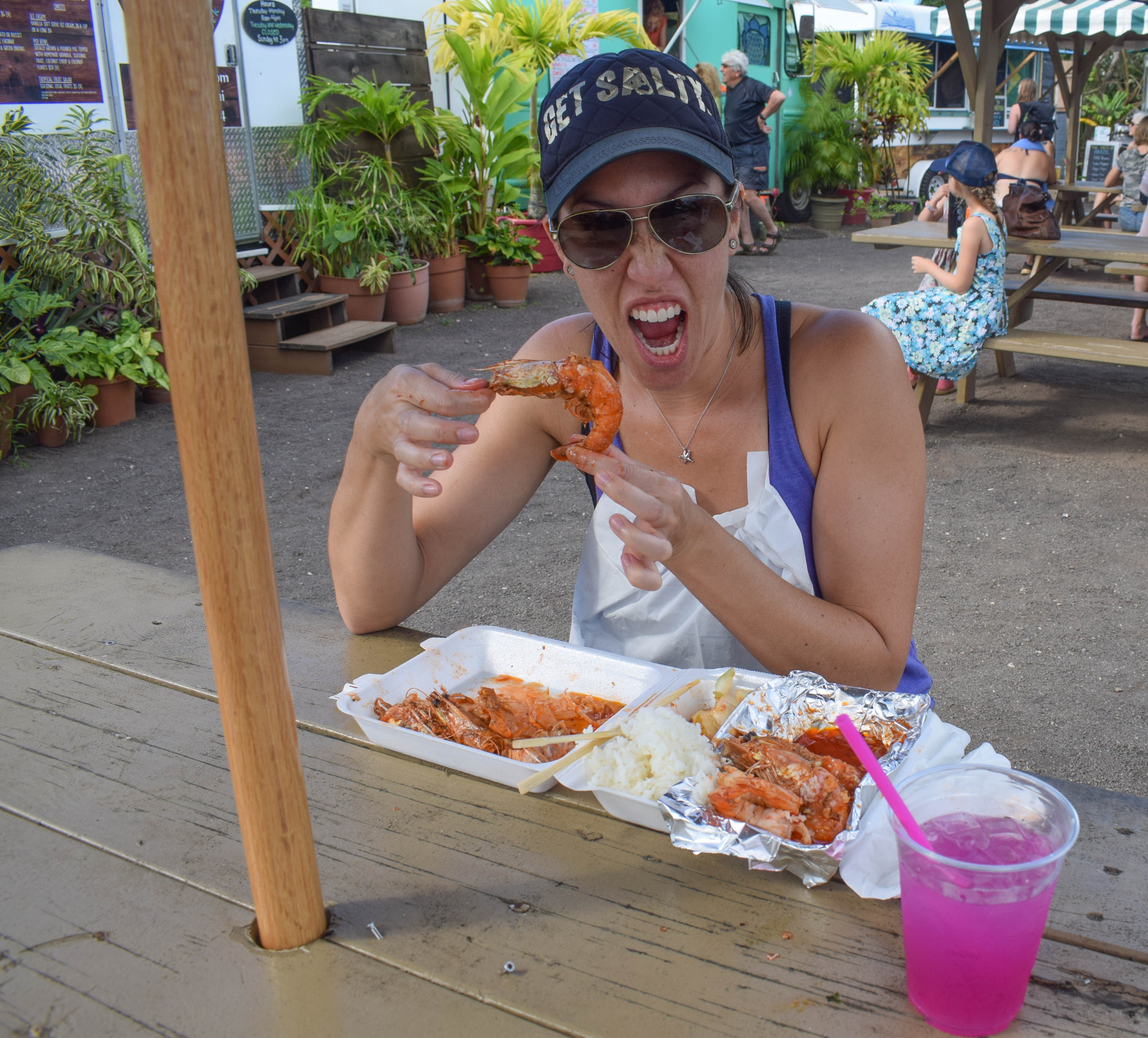 We decided on Trucking Delicious (cash only) because I was craving some local Kauai shrimp – one of the food staples the island is known for! The mermaid turquoise-colored truck lured me in, and the girls working inside were friendly.