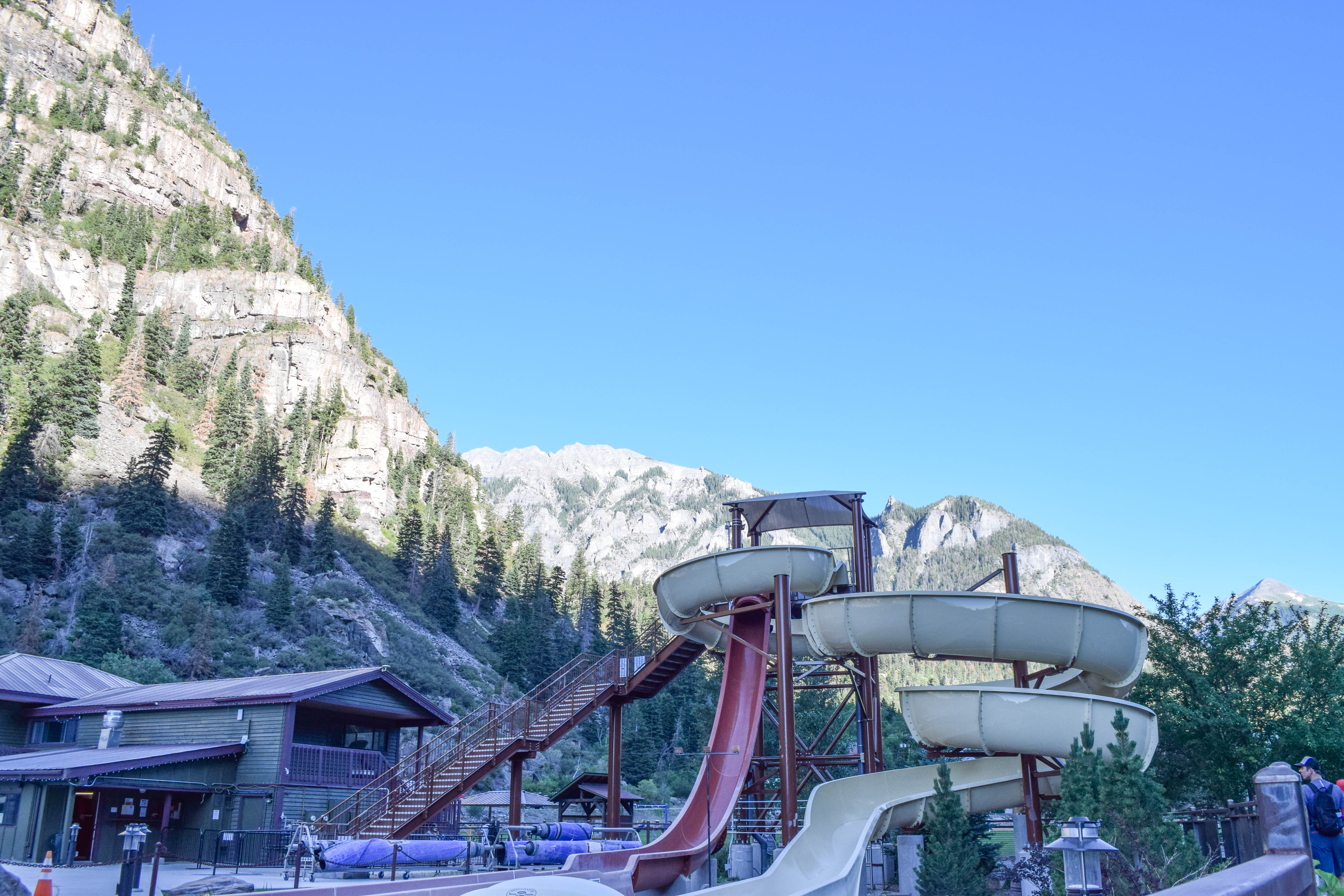 Once you arrive to Ouray, you’ll be at a bit lower altitude and enter the town of hot springs with a water slide!