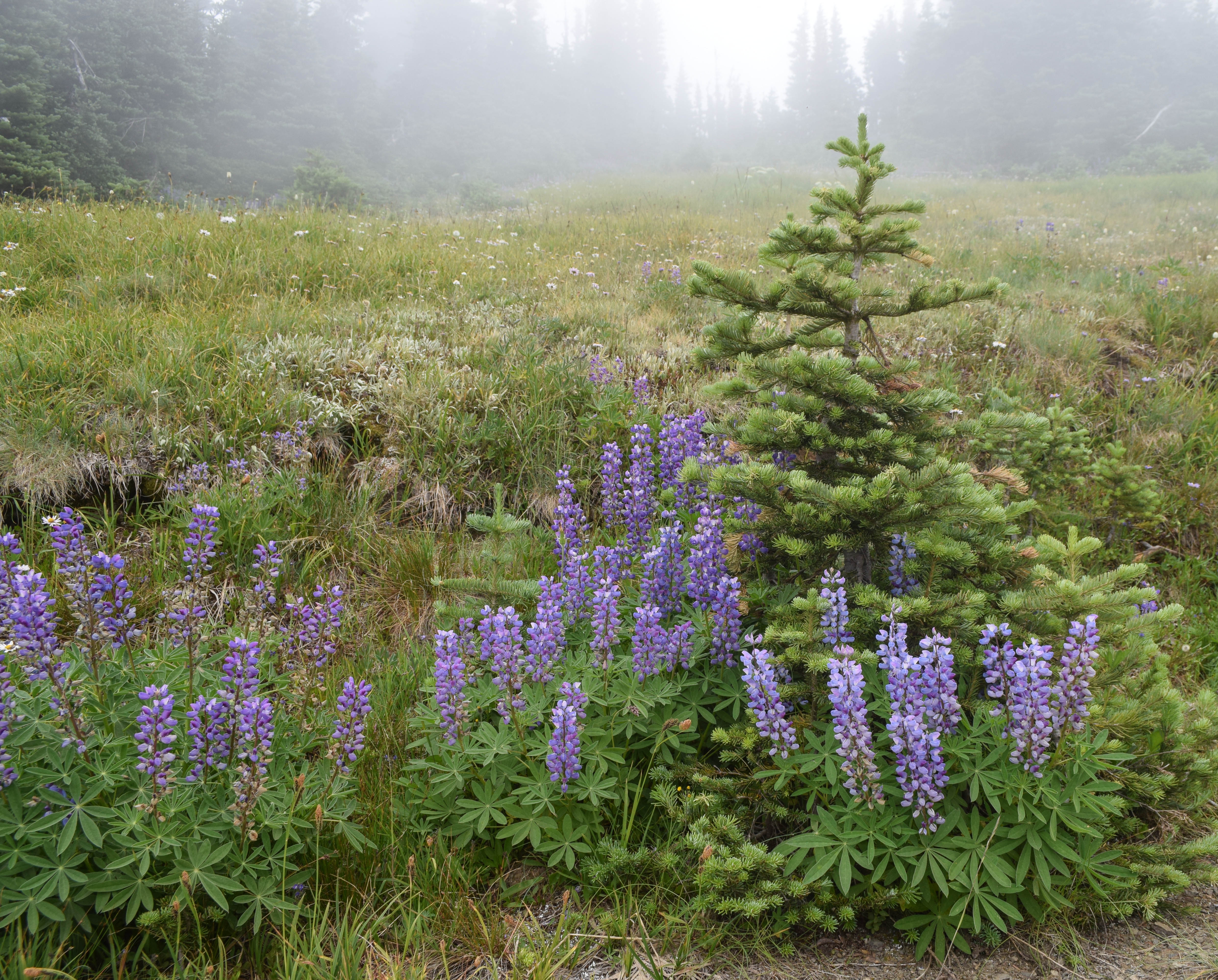 A little over a one-hour drive from Port Angeles is Blue Mountain, elevation 6,000′ (2,000 meters) and usually above the clouds. On a clear day the views are supposedly fantastic. We hiked on a foggy day, which made it even more interesting! Deer Park is also an excellent camping site with very few people and no facilities, only “faciliTREES”. 🙂 Actually there is one toilet up on the summit.